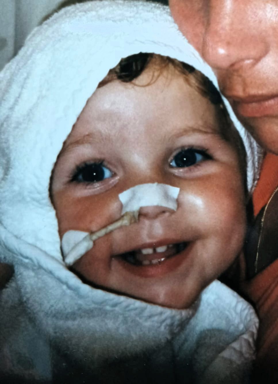 Rafke was een vrolijke peuter, die in de jaren negentig overleed aan de gevolgen van een genetische aandoening. Het DNA onderzoek werd recentelijk weer opgepakt. Van het overgebleven DNA-monster maakte ik zorgvuldig en met liefde een gedenksieraad voor Marion: Rafke's moeder. Dit is de laatste foto van Rafke thuis. Kort erna is ze opgenomen en tien dagen later stierf ze.